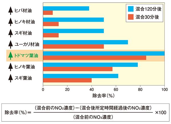 樹木精油ガス(かおり)による二酸化窒素の除去能力比較