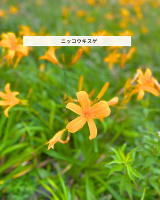 夏らしく白い花が多い中で、日光キスゲの黄色やアザミの赤も元気に咲いていました。